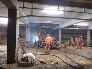 Travaux ligne a Kennedy - forage de micropieux sous la dalle Kennedy